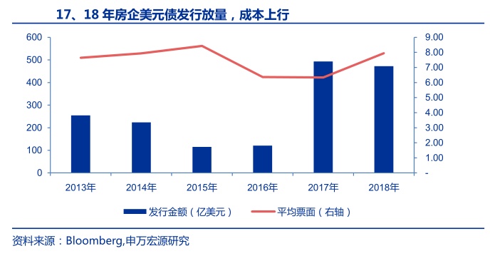 彭博数据显示,2018年中资地产债平均发行票息为7.83%,较2017年全年平均值抬升了约160BP。2016年地产主体融资成本为6.36%。