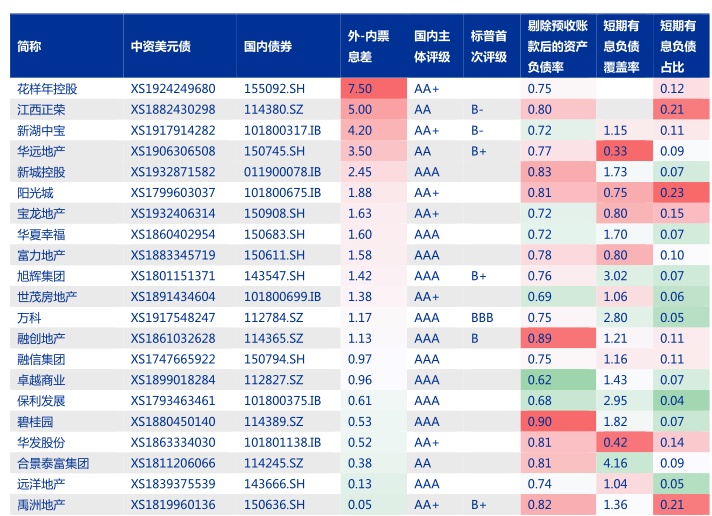 鉴于地产债境内外评级差异大,建议关注布局一二线为主的优质大中主体投资机会,如在龙头房企中,属万科(02202)平均票面利率最低,仅4.43%,其标普评级也较高。