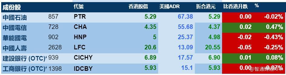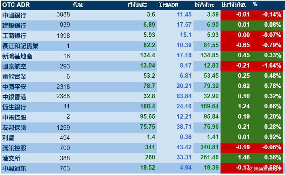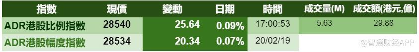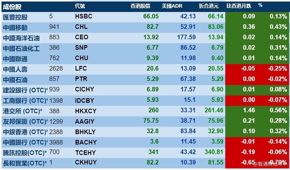 智通财经APP获悉,周三美股继续上扬,港股ADR指数也出现小幅上涨,按比例计算,收报28540点升25.64点或0.09%。大型蓝筹也也走出了各自的趋势,汇丰控股收报66.14元,较港股收涨0.13%;腾讯控股收报340.81元,较港股收跌0.06%。