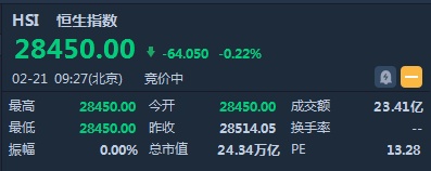 智通财经APP获悉,恒生指数开盘跌0.22%,报28450点。国企指数涨0.15%,报11246.79点。红筹指数涨0.06%,报4521.2点。大市盘前成交23.42亿港元。人民币走强利好。美联储偏鸽。隔夜美股小幅收高,纳指八连阳。