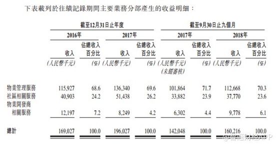 从收入分布来看,和泓服务收入主要来自物业管理服务和社区相关服务,其中物业管理服务分别占2016年、2017年及2018年1-9月收入的68.6%、69.6%及70.3%;社区相关服务分别占2016年、2017年及2018年1-9月收入的24.2%、26.2%及23.6%。