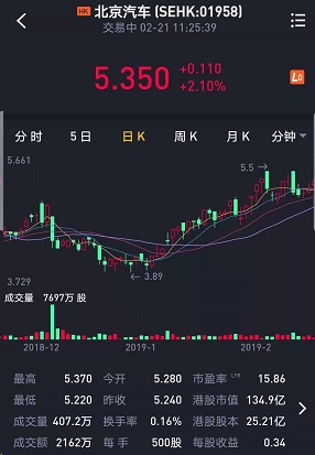 截至发稿,北京汽车(01958)涨2.10%,报5.350港元。