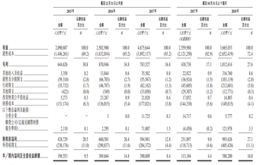 银城国际的收益从截至2017年10月31日止十个月的人民币2555.5百万元增加至截至2018年10月31日止十个月的人民币3662.7百万元。于2015年、2016年及2017年12月31日即2018年10月31日,该公司于合营企业及联营公司的投资分别为人民币98.1百万元、330.3百万元、410.8百万元及421.0百万元。