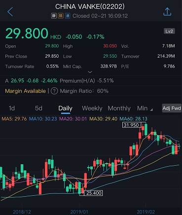 截至今日收盘,万科企业跌0.17%,报29.8港元。