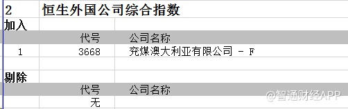 恒生外国公司综合指数新加入兖煤澳大利亚(03668)。