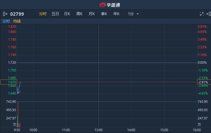 智通财经APP获悉,中国华融(02799)早盘低开后快速拉升,跌幅缩窄,截至9时35分,跌2.91%,报1.67港元,成交额达2899万港元。