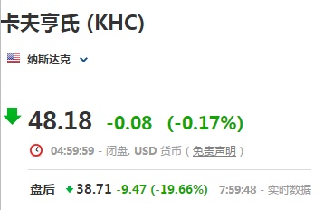 智通财经APP获悉,周四美股盘后,食品巨头卡夫亨氏(KHC.US)公布其2018年四季度和全年业绩,减记154亿美元商誉资产,大幅下调股息,并披露因采购会计行为和内控问题收到SEC传票。卡夫亨氏股价盘后大跌19.66%,给其最大股东巴菲特带来逾30亿美元的账面损失。