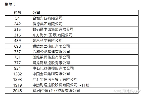 智通财经APP获悉,恒生指数有限公司 (“恒生指数公司”) 周五宣布,截至 2018 年12月31日之恒生指数系列季度检讨结果,所有变动将于2019年3月11日 (星期一) 起生效。
