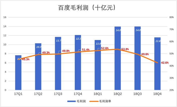 收结构变迁造成毛利润率的波动。2018年Q3毛利润140亿,毛利润率50%;Q4毛利润116亿,毛利润率42.6%。