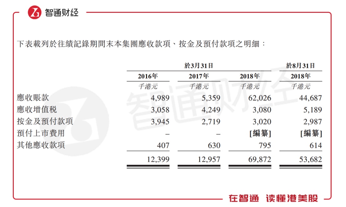 智通财经APP还注意到,尽管公司流动比率超过1倍,但公司流动资产中有4468.7万元营收账款,营收账款的周转天数从2018年的29.2天大幅增至2018年8月31日的51.7天。