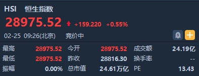 智通财经APP获悉,恒生指数开盘涨0.55%,报28978.52点。国企指数0.65%,报11501.9点。红筹指数涨0.09%,报4588.22点。大市盘前成交24.19亿港元。隔夜美股三大股指悉数收涨,中概股普涨。