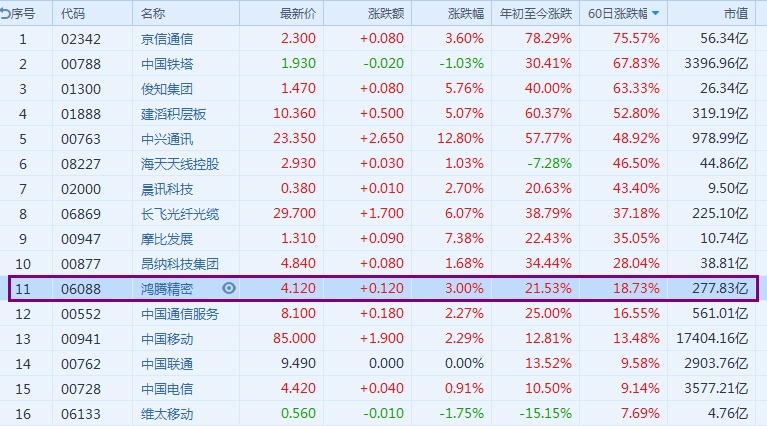 (3)公司所处的5G及苹果产业链板块近期均在持续大涨。近期A/H两地市场5G板块及苹果产业链板块持续大涨,同样做连接器的立讯精密(002475.SZ)此轮涨幅已近六成,鸿腾精密股价表现大幅落后。