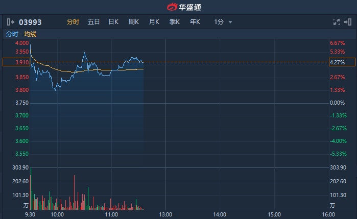 智通财经APP获悉,洛阳钼业(03993)早盘跳水后快速拉起,维持横盘震荡,截至11时33分,涨4.27%,报3.91港元,成交额达2.178亿港元。