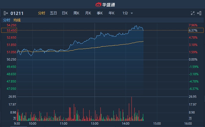 港股异动︱港股通持仓比例显著上升 比亚迪股份(01211)涨超6%