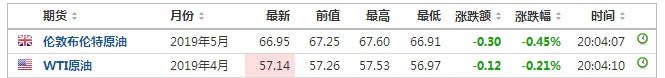 油价方面,WTI原油跌0.21%,报57.14美元/桶。布伦特原油跌0.45%,报66.95美元/桶。