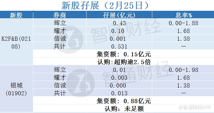 新股孖展统计 | 2月25日