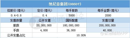 智通财经APP获悉,2月25日,纳尼亚集团(08607)配售结束。配售招股价区间为0.4-0.8港元,最终定价0.4港元,每手2000港元。
