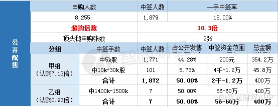 其中,公开配售申购人数8255,一手中签率15%,超购倍数10.3倍。
