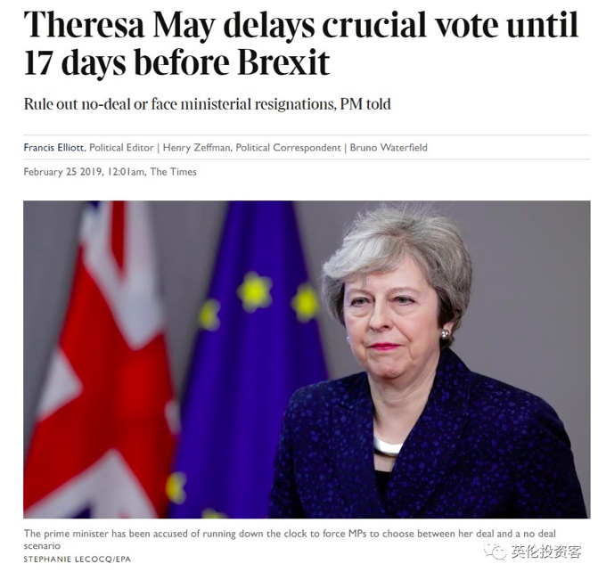 特雷莎·梅此前曾多次强调不会推迟脱欧日,企图用“拖延大法”吓到议员。