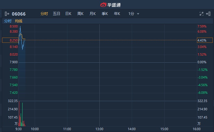 智通财经APP获悉,中信建投(06066)A股早盘一字板涨停,港股中资券商股出现分化,昨日强势的中州证券今日弱势,中信建投(06066)延续涨势,截至9时41分,涨4.43%,报8.25港元,成交额达1.175亿港元。