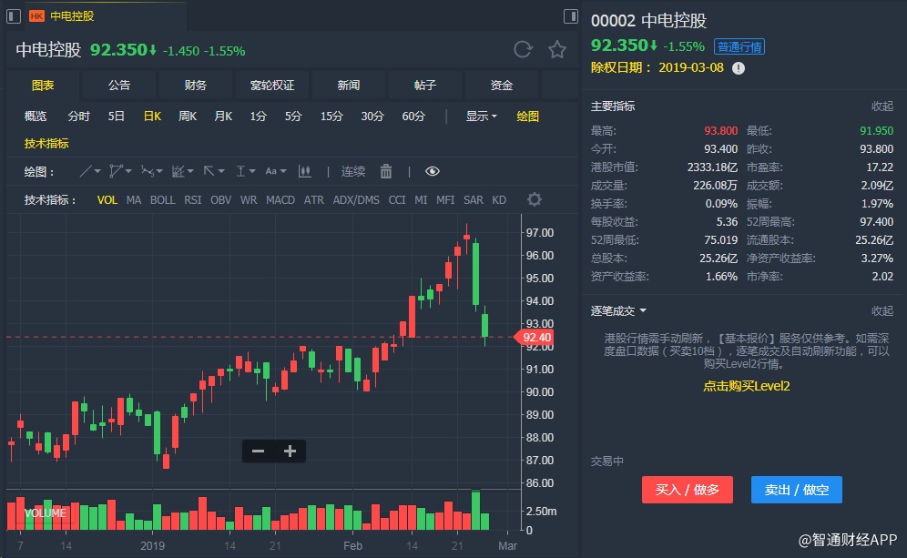 截至发稿,中电(00002)跌1.55%,报92.350港元。