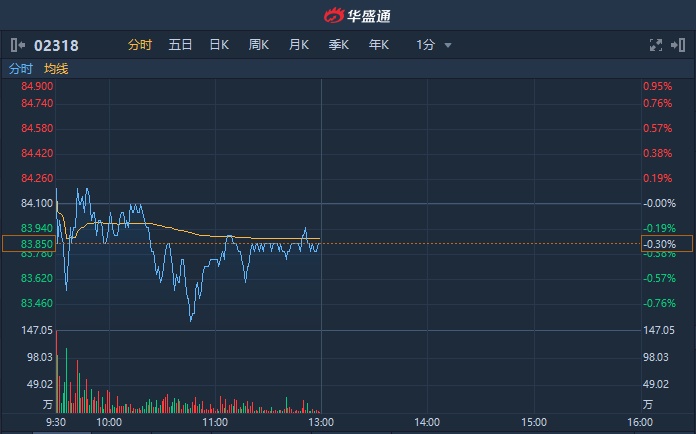港股异动︱中国平安(02318)现一宗大手成交涉资1.29亿元 现跌0.3%