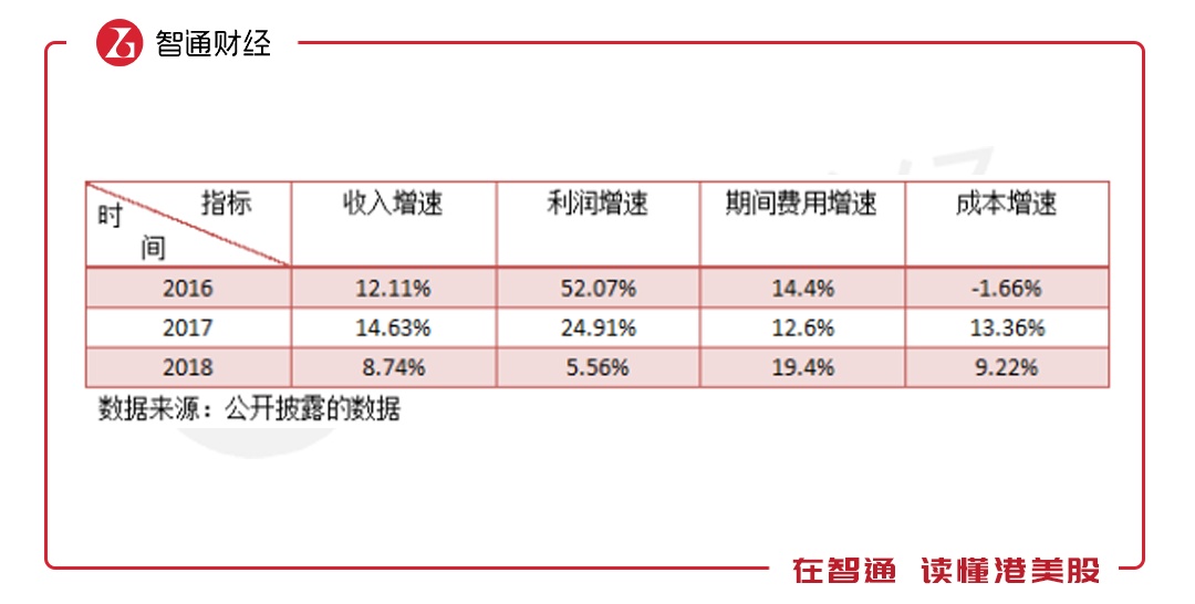 单看一张财报有点单调,也不足说明问题,智通财经将信义玻璃过去三年的财报整合在了一起,与过去两年相比,2018年的收入及净利润增速明显下滑幅度很大,且2018年期间费用增速及成本增速均高于收入及净利润增速。