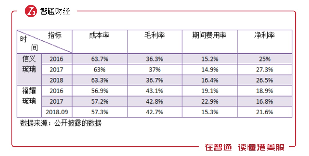 以下为信义玻璃和福耀玻璃过去三年在费用率及利润率情况:
