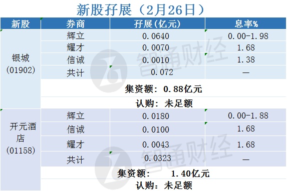 新股孖展统计 | 2月26日