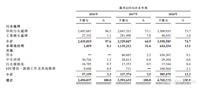 其他:公司亦从事供水项目、中水回用项目、污水源热泵等项目的设计、建造、运营及维护。