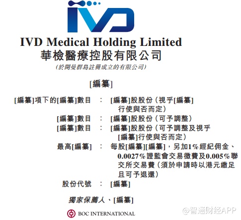 智通财经APP获悉,据港交所2月26日披露,华检医疗控股有限公司向港交所递交上市申请,BOC INTERNATIONAL为其独家保荐人。