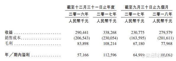 业绩收益方面,2016年、2017年、2018年9月30日止,营业收入分别为2.90亿、3.38亿、2.79亿,毛利分别为8389.8万、1.08亿、7796.8万元,净利分别为5716.6万、1.13亿、6606.2万元。