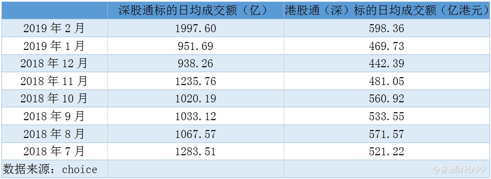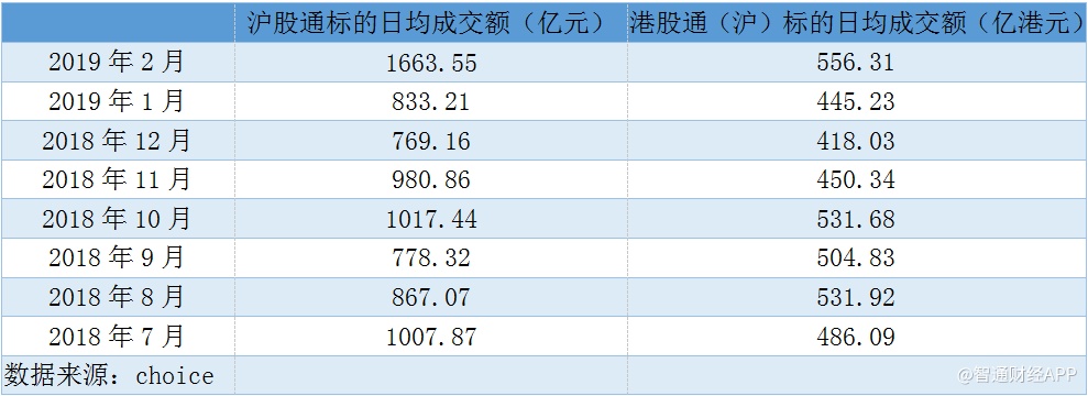 伴随着股市上涨的,是两地资本互通的热度。据智通财经APP统计,北上资金方面,2019年2月,沪(深)股通标的日均成交额分别为1663.55亿、1997.6亿;南下资金方面,沪(深)港股通日均成交额分别为556.31亿、598.36亿,均相较于其他月份显著放大。