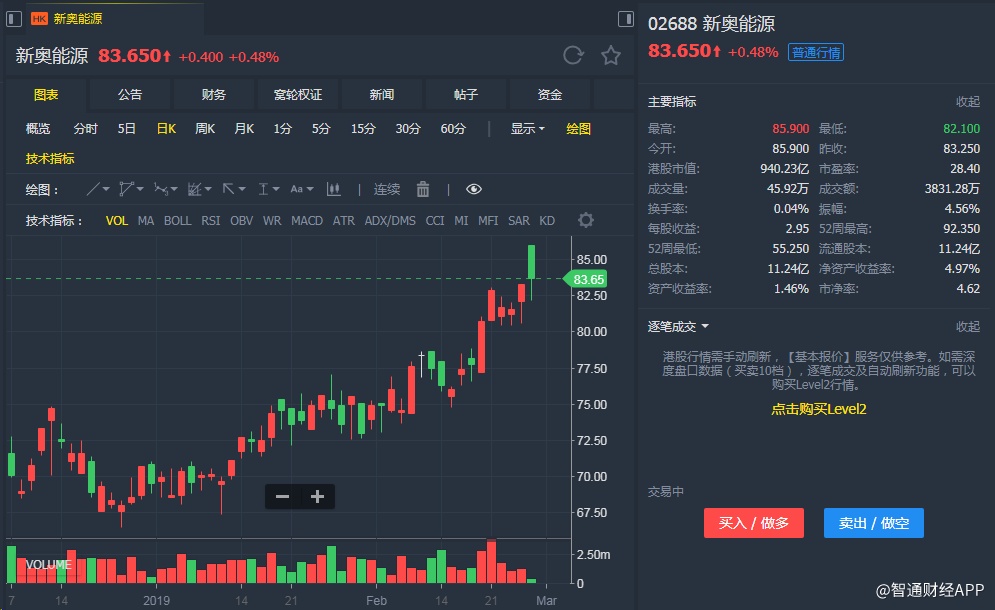 截至发稿,新奥能源(02688)升0.48%,报83.650港元。