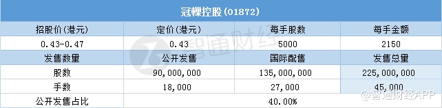 智通财经APP获悉,2月27日,冠轈控股(01872)配售结束。配售招股价区间为0.43-0.47港元,最终定价0.43港元,每手2150港元。