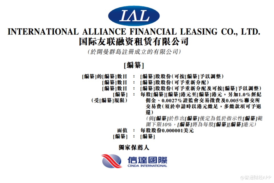 智通财经APP获悉,根据港交所2月26日披露的信息,国际友联融资租赁有限公司已通过港交所的上市聆讯,信达国际为其独家保荐人。
