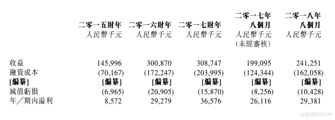 该公司的毛利由2015财年的约人民币8.6百万元增加240.7%至2016财年的约人民币29.3百万元,并进一步增加24.9%至2017财年的约人民币36.6百万元。于2018年八个月,纯利为约29.4百万元,较2017年八个月增加约人民币3.3百万元或12.5%。于2018年8月31日,该公司融资租赁应收款项为约4168百万元。