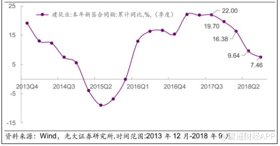 数据显示,截至2017年下半年,我国建筑新签合同额及增速均处于逐步下行的阶段,从2017年Q3的22%,下降为2018年Q3的7.46%。这说明与建筑相关的钢铁需求量预计将出现下滑。