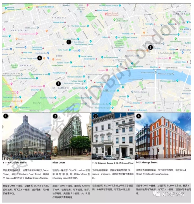 以上是英伦投资客(ID:BuyLondon)统计的由华人置业持有的英国写字楼清单,全部位于伦敦一区,且都是临近主要道路和地铁站的综合体或甲级写字楼。