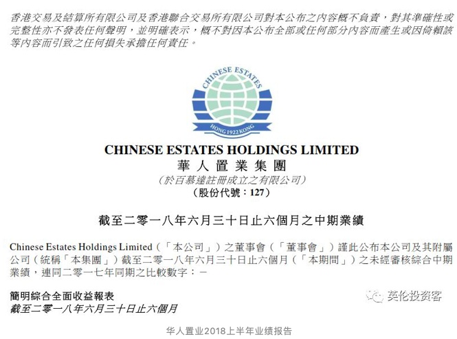 反观来自香港得收入,2018年上半年华人置业只在香港赚得3.73亿港元,比去年同期降低了1.54亿港元,光是香港房产销售这块业务就缩水了1.52亿港元。