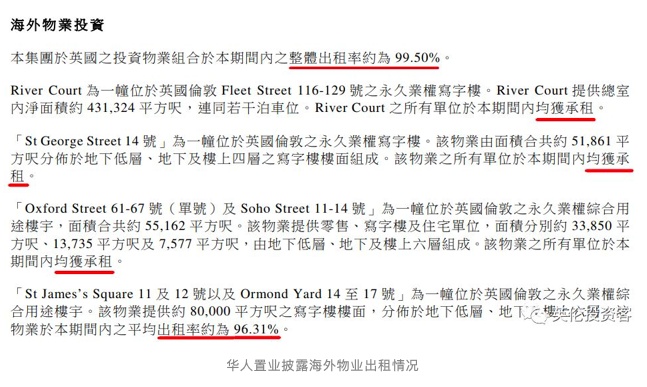 华人置业2018年业绩报告显示,其在英国所有投资物业的整体出租率达到99.5%。