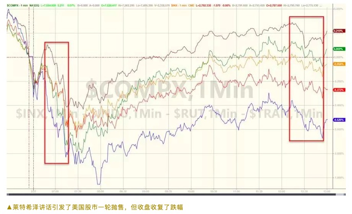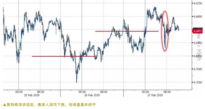 莱特希泽表态后,离岸人民币兑美元一度下跌0.12%,标普500指数也扩大跌幅,道琼斯指数转跌。截至收盘:道琼斯指数下跌0.3%,报25985.16点;标普500指数下跌不到0.1%,报2792.38点;纳斯达克指数上涨不到0.1%,报7554.51点。