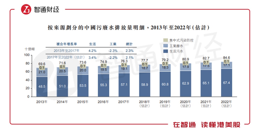据弗若斯特沙利文报告,自2017-2022年,预计生活污水排放量将以3.4%的复合年增长增长,与之相反,随着政府持续推进工业节水及工业废水零排放项目,预计工业废水排放量将于2022年进一步下降至171亿吨。