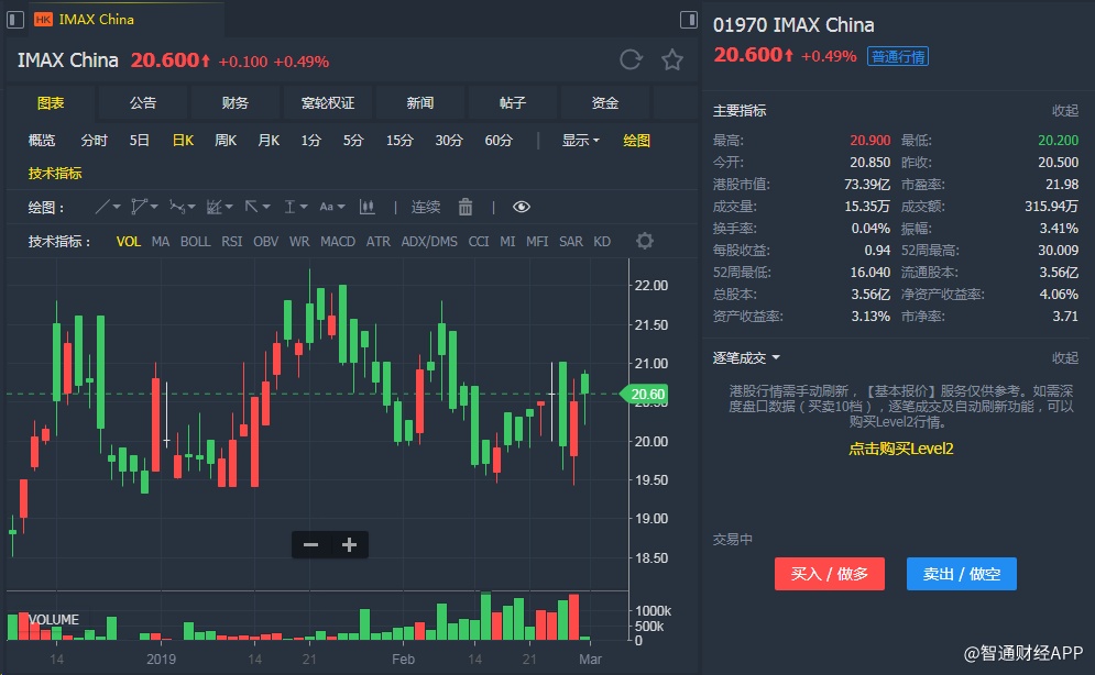 截至发稿,IMAX中国(01970)升0.49%,报20.600港元。