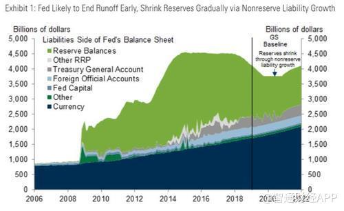 高盛预计,FOMC会在3月会议上宣布2019年第三季度末结束缩表。在第三季度末,美联储的资产总额可能为3.7-3.8万亿美元,银行准备金为1.3-1.4万亿美元。据此,高盛还预估,美联储通过增加非偿还债务(主要以未偿货币形式),准备金将进一步减少,直到2020年下半年达到12万亿美元。