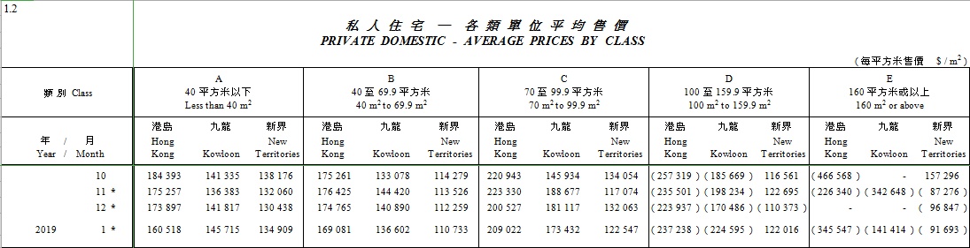 智通财经APP获悉,2月28日,据香港差饷物业估价署公布的临时数据显示,2019年1月九龙及新界区实用面积431方呎以下细单位平均每方呎售价率先回升。其中新界区呎价约1.25万港元,较去年12月按月大升约3.4%,以实用面积约430方呎单位计算,该月平均售价约538万港元。