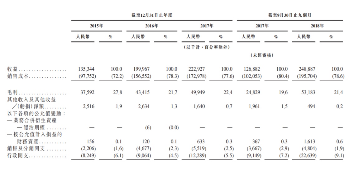截至2015年、2016年及2017年12月31日止年度,豆盟的收益总额分别为人民币135.3百万元、人民币200百万元及人民币222.9百万元,复合年增长率为28.3%。其收益由截至2017年9月30日止九个月人民币126.9百万元增加96.2%至截至2018年9月30日止九个月人民币248.9百万元。