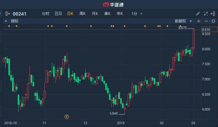 智通财经APP获悉,阿里健康(00241)尾盘快速拉升,高见8.8港元,创近三年新高,截至15时31分,涨8.07%,报8.7港元,成交额达2.904亿港元。