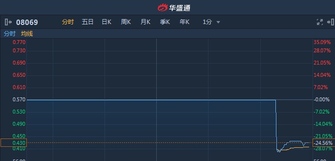 智通财经APP获悉,纵横游控股(08069)于2月13日公布前三财季业绩,由盈转亏至2170.6万港元。截至15时51分,跌24.56%,报价0.43港元,成交额92.55万。