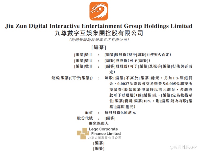 智通财经APP获悉,据港交所3月1日披露,九尊数字互娱集团控股有限公司向港交所递交上市申请,力高企业融资有限公司为其独家保荐人。